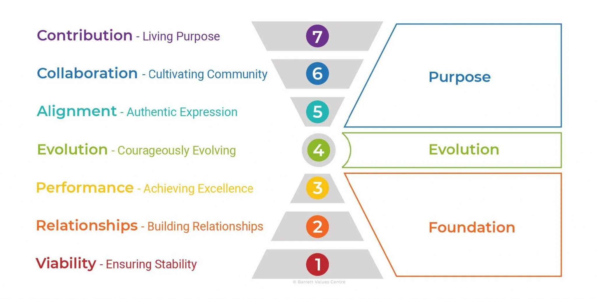 The Barrett Model outlines a pathway to human flourishing with a three-part framework, which consists of: