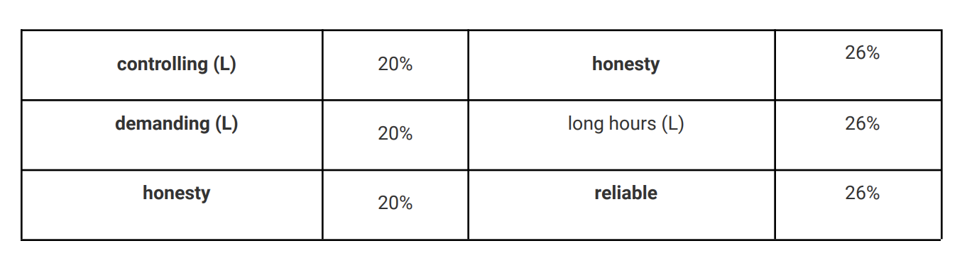 However, there is a greater tendency for female leaders to be seen as controlling and demanding, with these potentially limiting values being recognized in 32% of women and only 20% of men. These traits seem to contradict the collaborative approach noted above. Female leaders also have a propensity to overwork, with long hours.