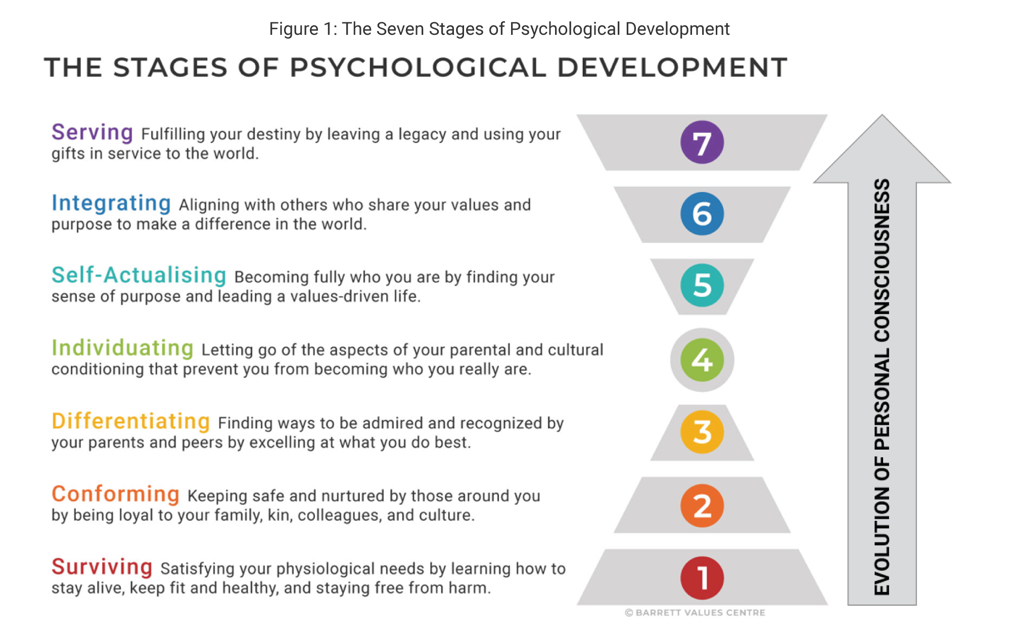 This approach recognises that every employee, every supervisor and every manager is on a personal journey of psychological development. Supporting them on this journey helps them: a) to measure where they are on their journey; b) to understand and modulate their drives and motivations, and c) to understand what developmental tasks they need to accomplish to accelerate their evolution. By working on their own evolution, they are able to support their staff in their evolution. This is how leaders create high levels of engagement, low levels of entropy, and enviable levels of performance.